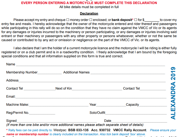 Run commences at 10.00 am sharp from Alexandra Tourist Park (the caravan park) for a run of