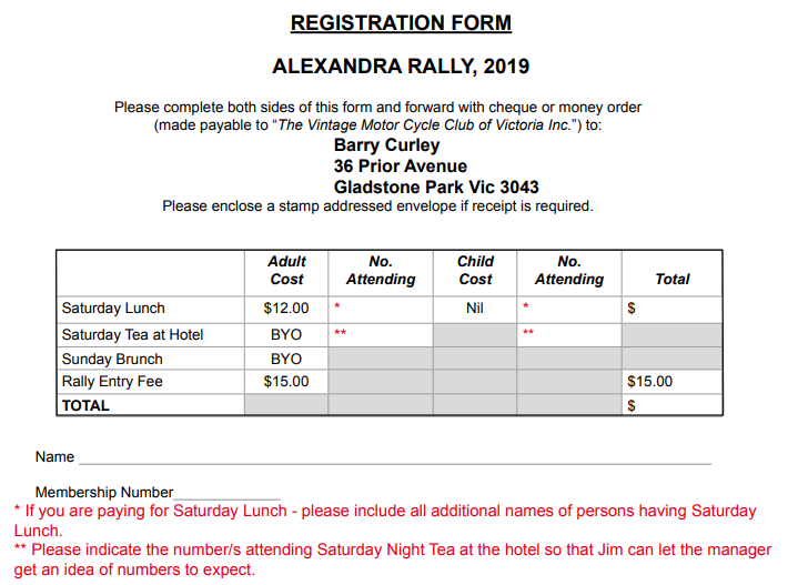 Run leaves Alexandra information centre at 11.30 am sharp for a short run to Yarck for lunch. Return