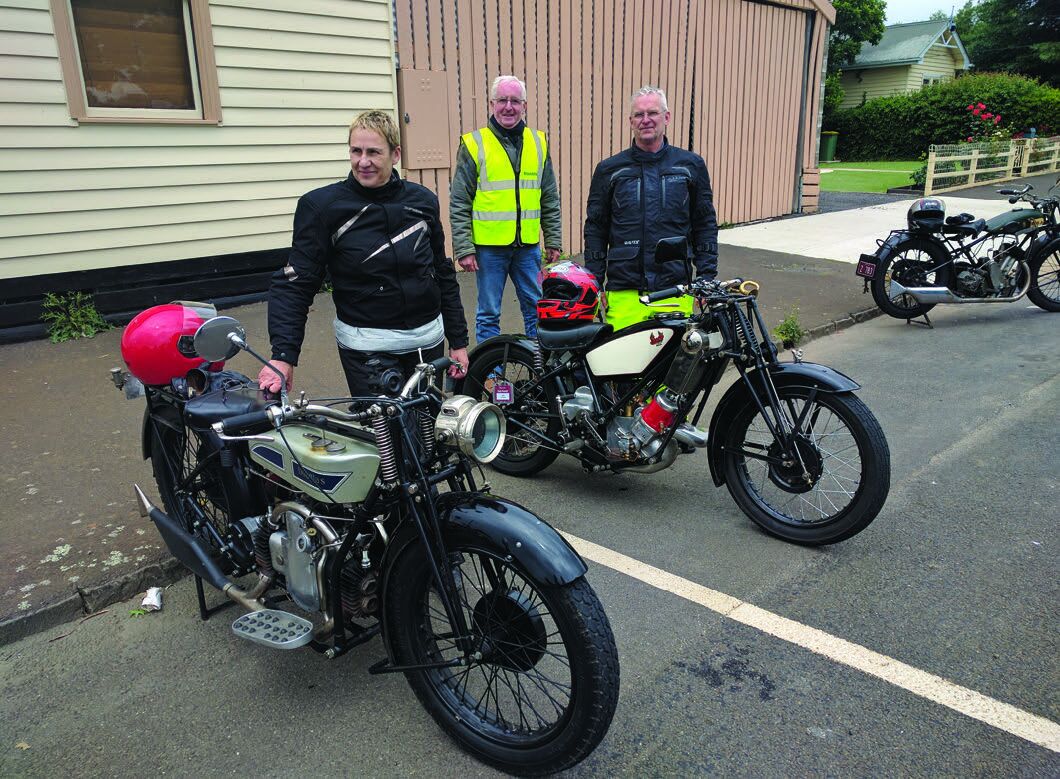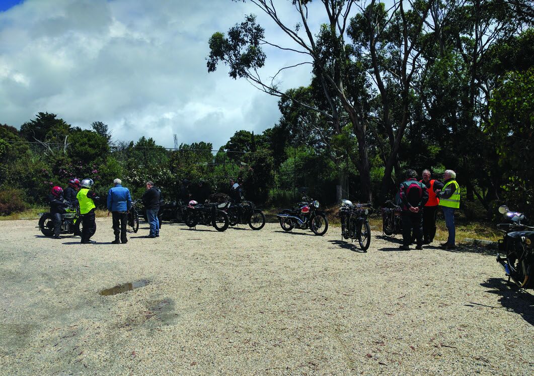 On the Sunday morning heading to Gisborne the weather looked fine despite the dire warnings. On arriving at Mark’s I was surprised to see thirteen bikes lined up and their riders getting their wet weather gear on. The bikes that were there really surprised me - so many different makes. We had Keith on his JAP special, John on his AJS big port and Paul was on his cammy Velocette. Of particular interest to me was Ian on his newly purchased Scott, which I had never seen before and Jennifer’s 600cc Douglas that I had seen before, but had changed ownership.